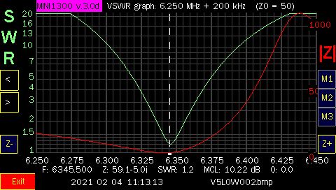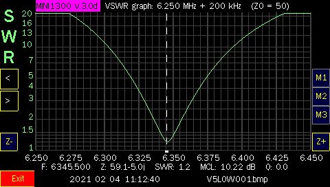 Up to 7 bands + CB with only one small antenna (40m/30m/20m/17m/15m/12m/CB/10m). All the bands are countinuously tunable for the best SWR on all frequencies in this range. In addition to HAM you can count also with the AM broadcast, Air, Maritime mobile or Military service shortwave bands plus quiet reception and selectivity makes this antenna suitable also for SWL's (radio listeners). Shortwave Radio Listeners will welcome continuous antenna tune across the SW range from 6.5 to 30MHz. Here are the minimum and maximum frequency range SWR charts: